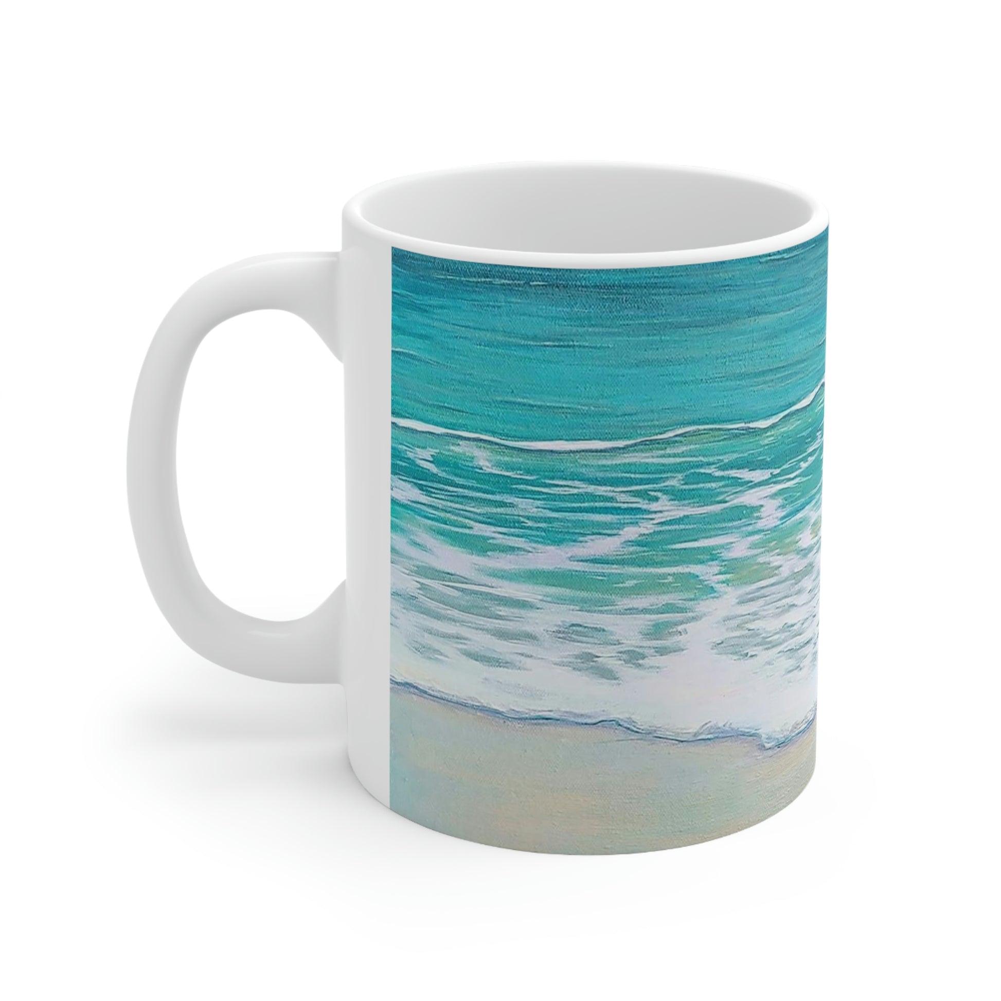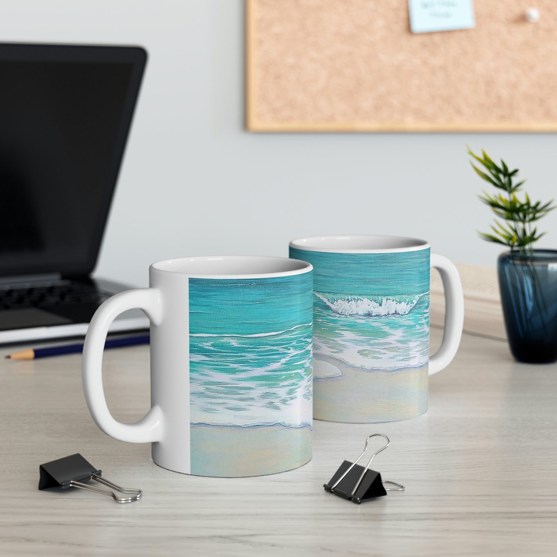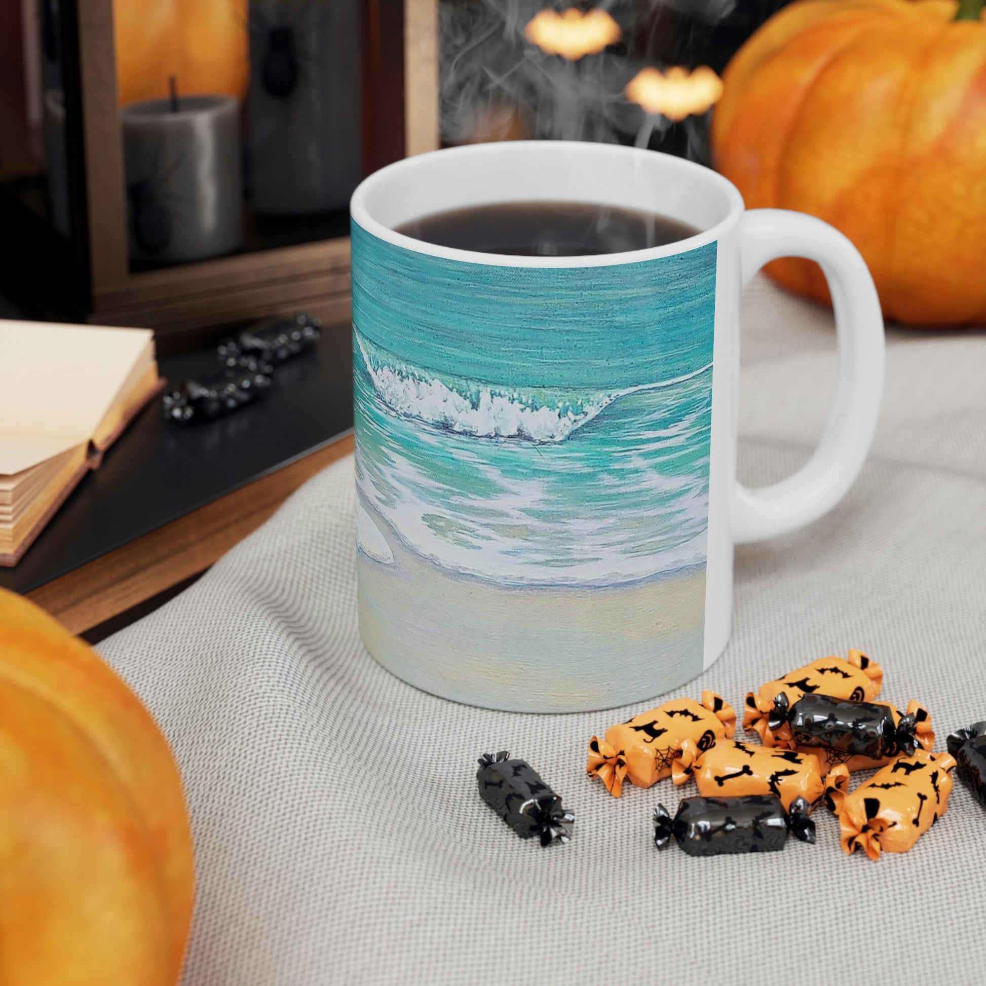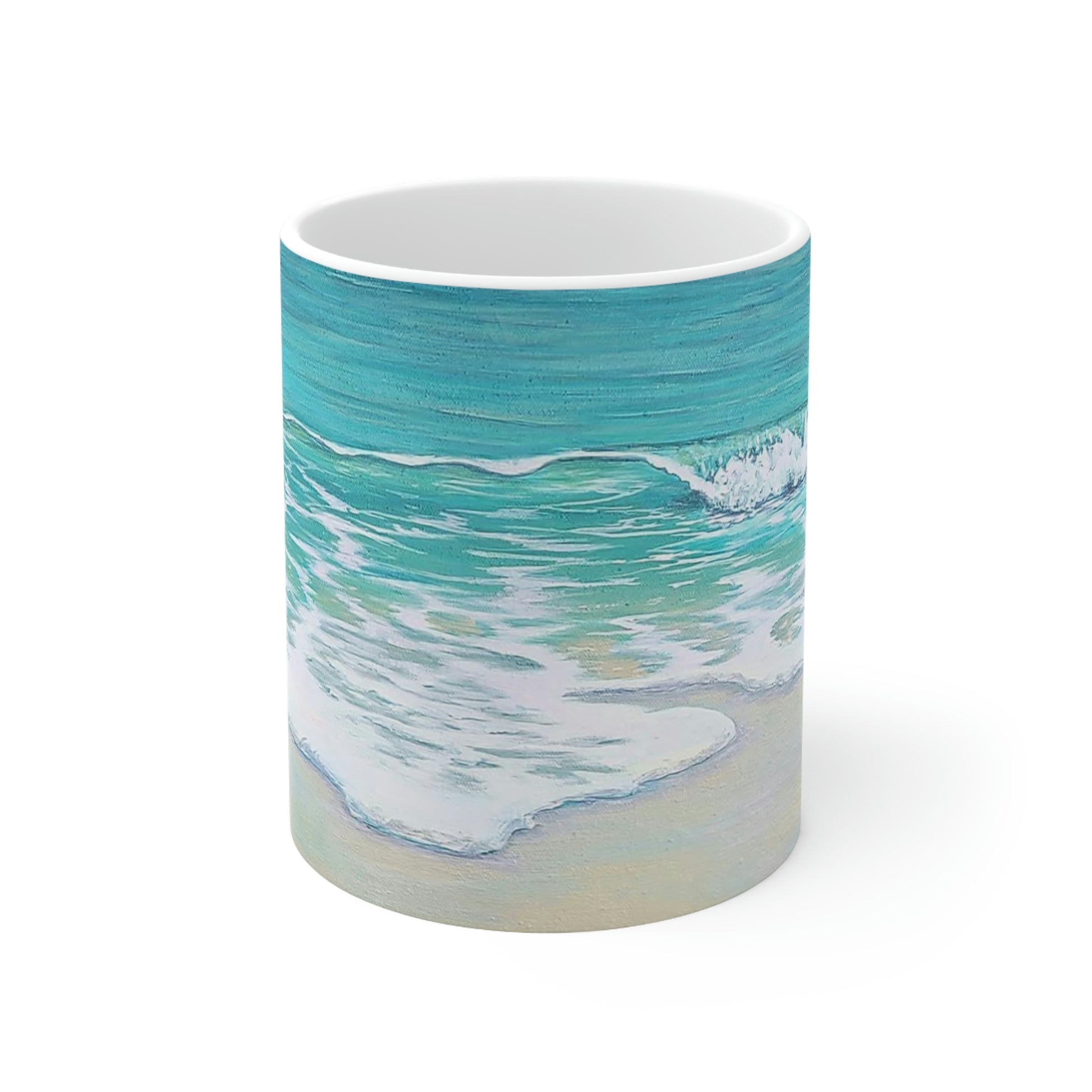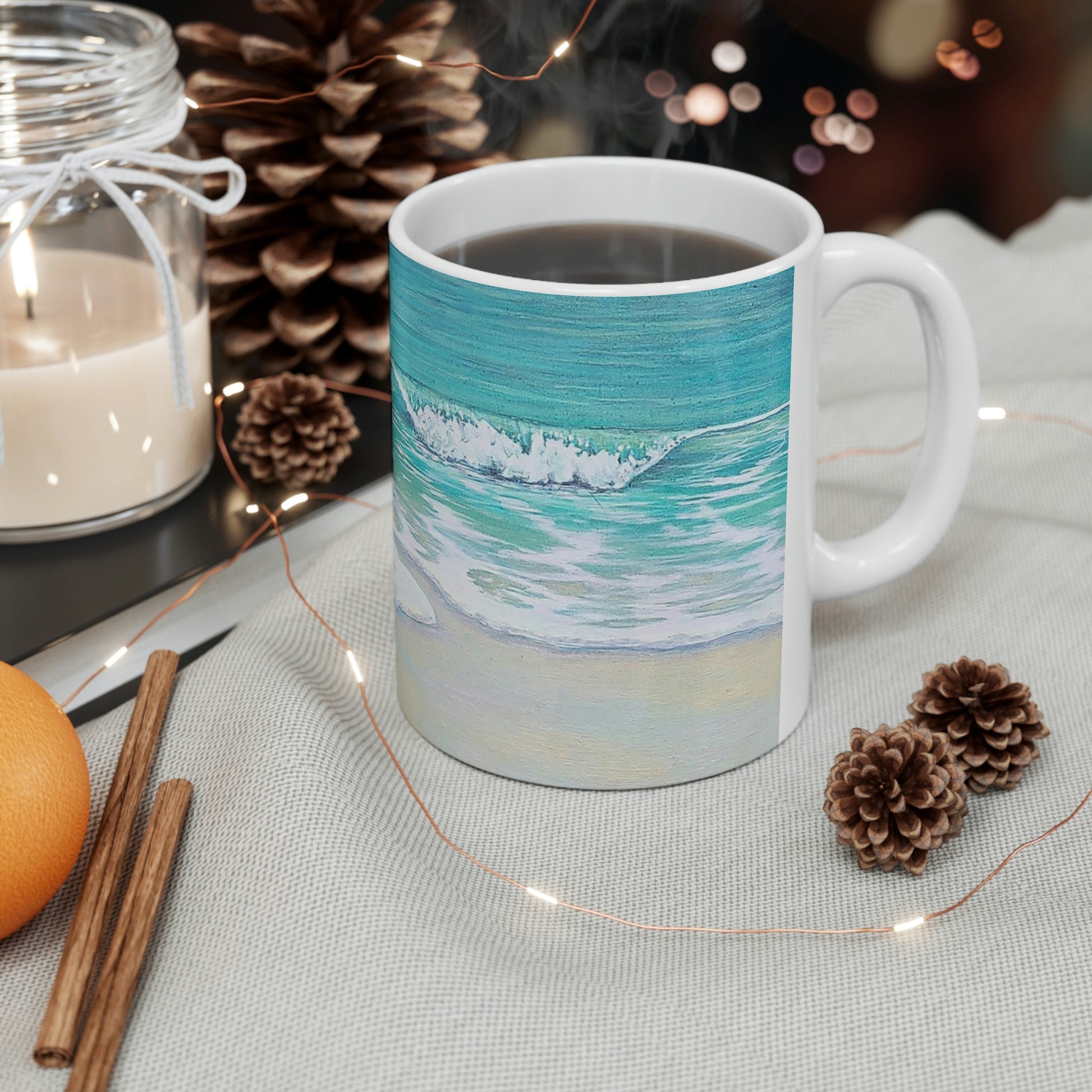 Warm-up with a nice cuppa from your Beach Wave ceramic mug. The images on the mug comes from my original acrylic painting "Sunset on the Beach". High quality printing captures the texture of the canvas and brushstrokes on the original. The mugs are BPA and Lead-free, microwave & dishwasher-safe, and made of white, durable ceramic in an 11-ounce size. incredibly vivid colors