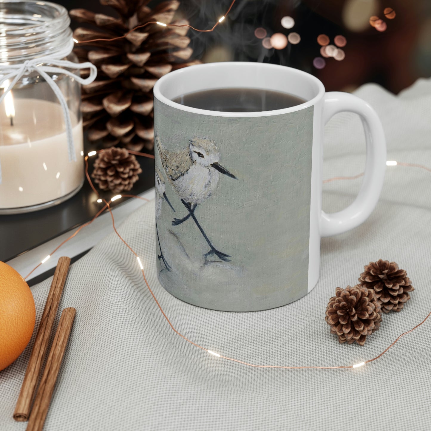 Warm-up with a nice cuppa from your sanderlings mug. The images on the mugs come from my original painting. High quality printing captures the texture of the canvas and brushstrokes on the originals. The mugs are BPA and Lead-free, microwave & dishwasher-safe, and made of white, durable ceramic in an 11-ounce size. incredibly vivid colors