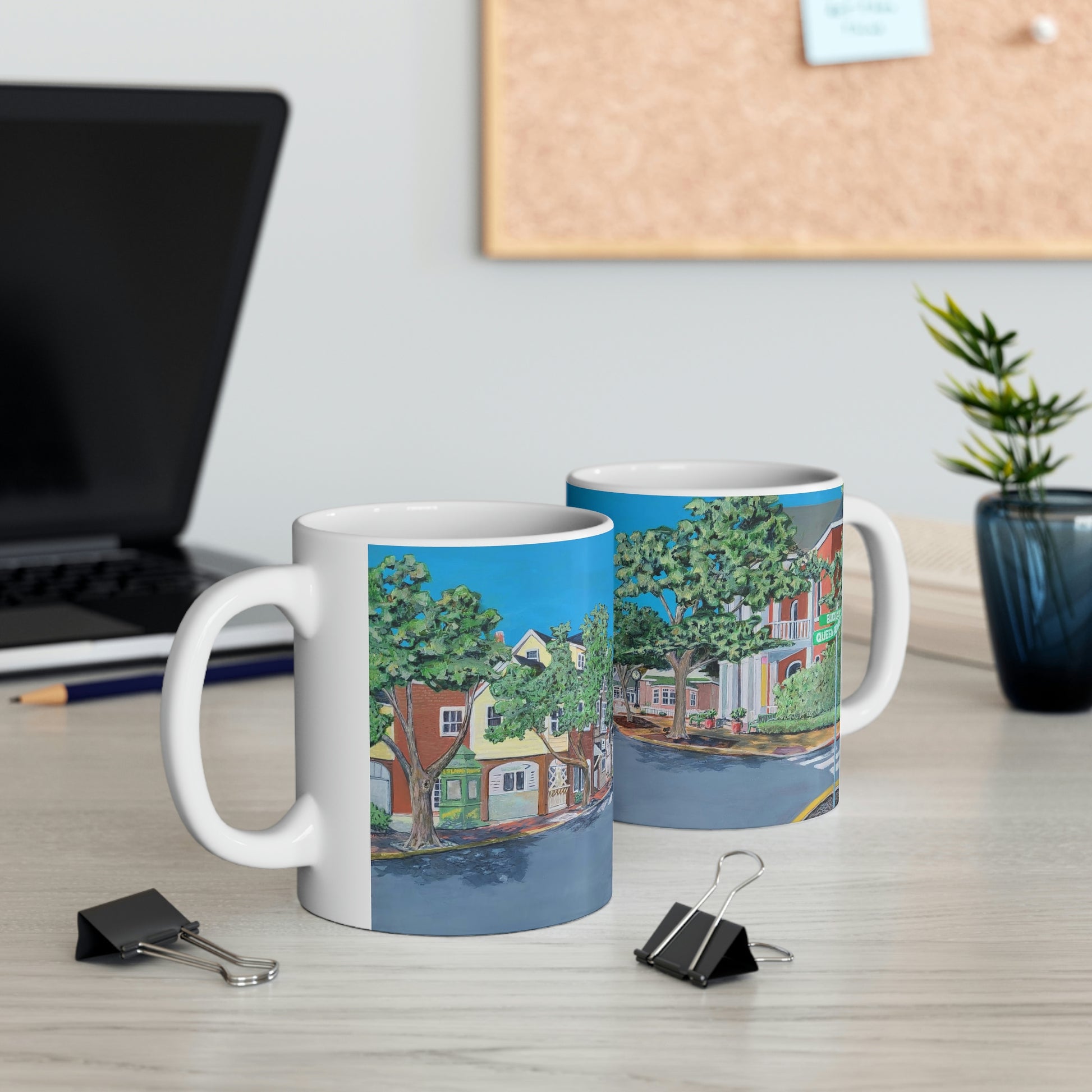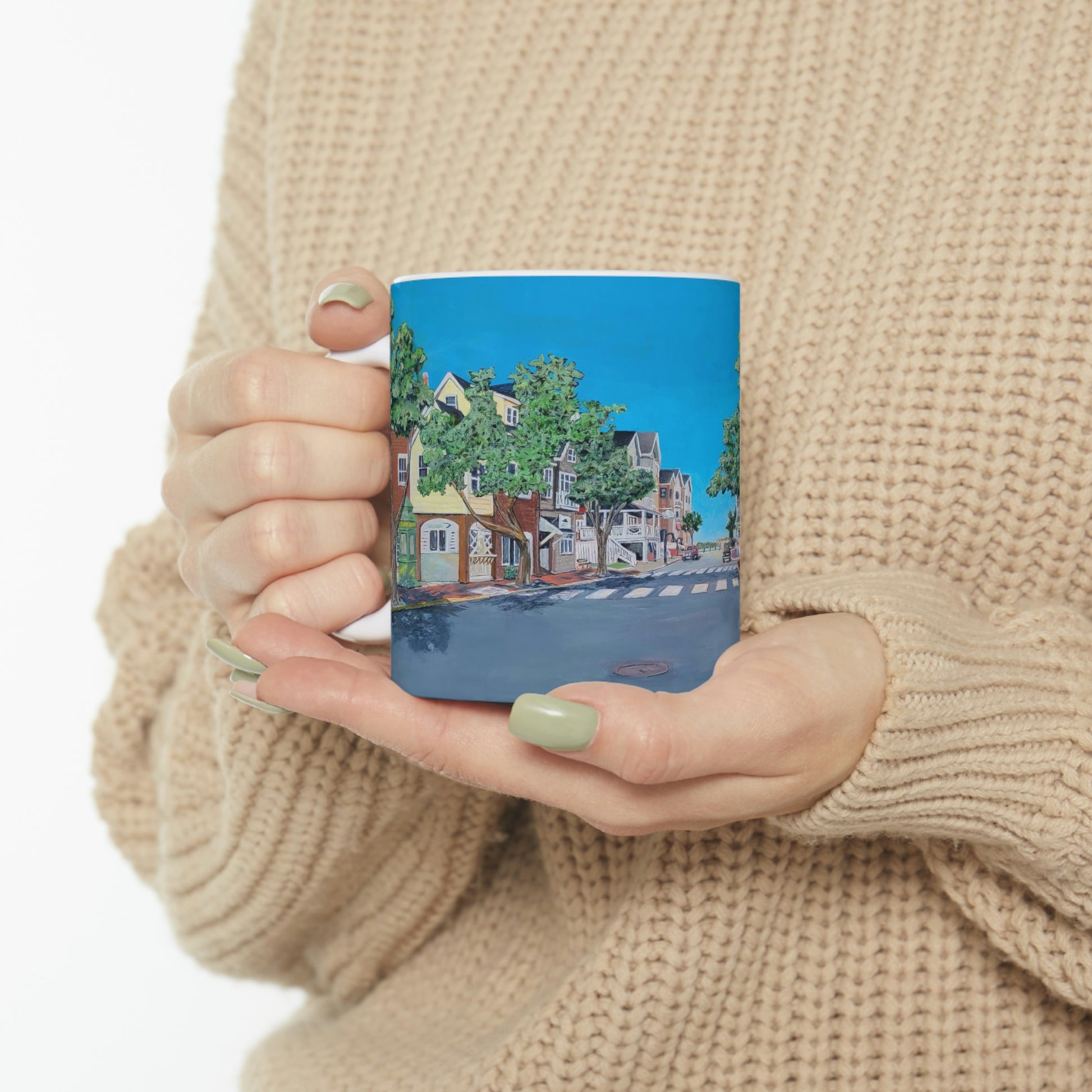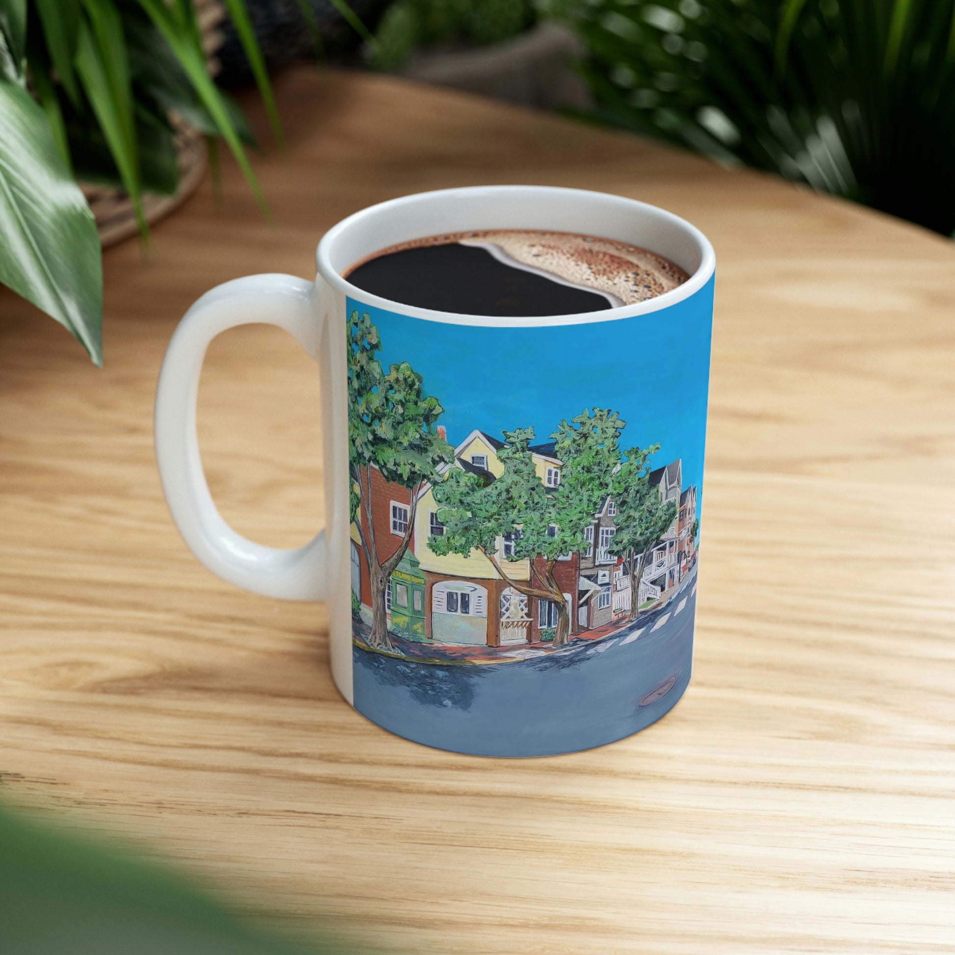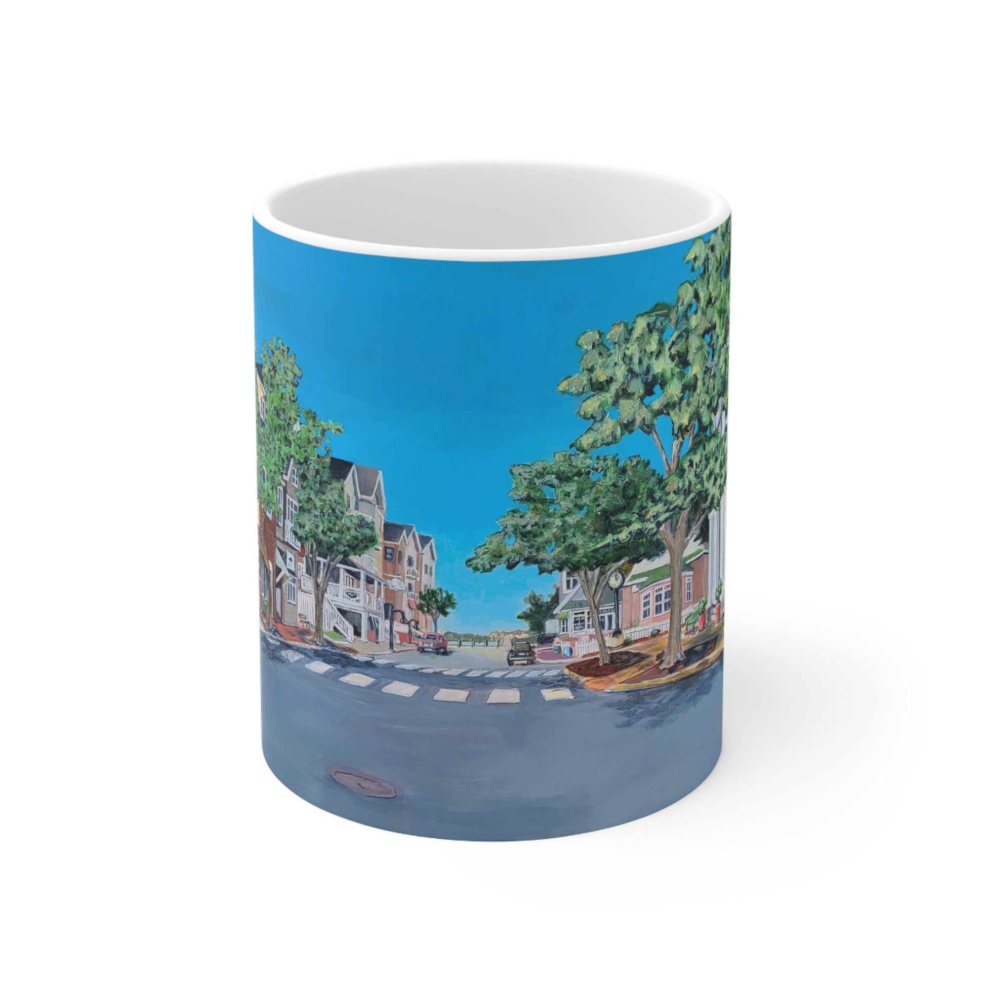 Warm-up with a nice cuppa from your Downtown Manteo ceramic mug. The images on the mug captures the colors and textures from my original painting of Downtown Manteo. The cute town located in the Outer Banks of North Carolina. The mugs are BPA and Lead-free, microwave & dishwasher-safe, and made of white, durable ceramic in an 11-ounce size. incredibly vivid colors
