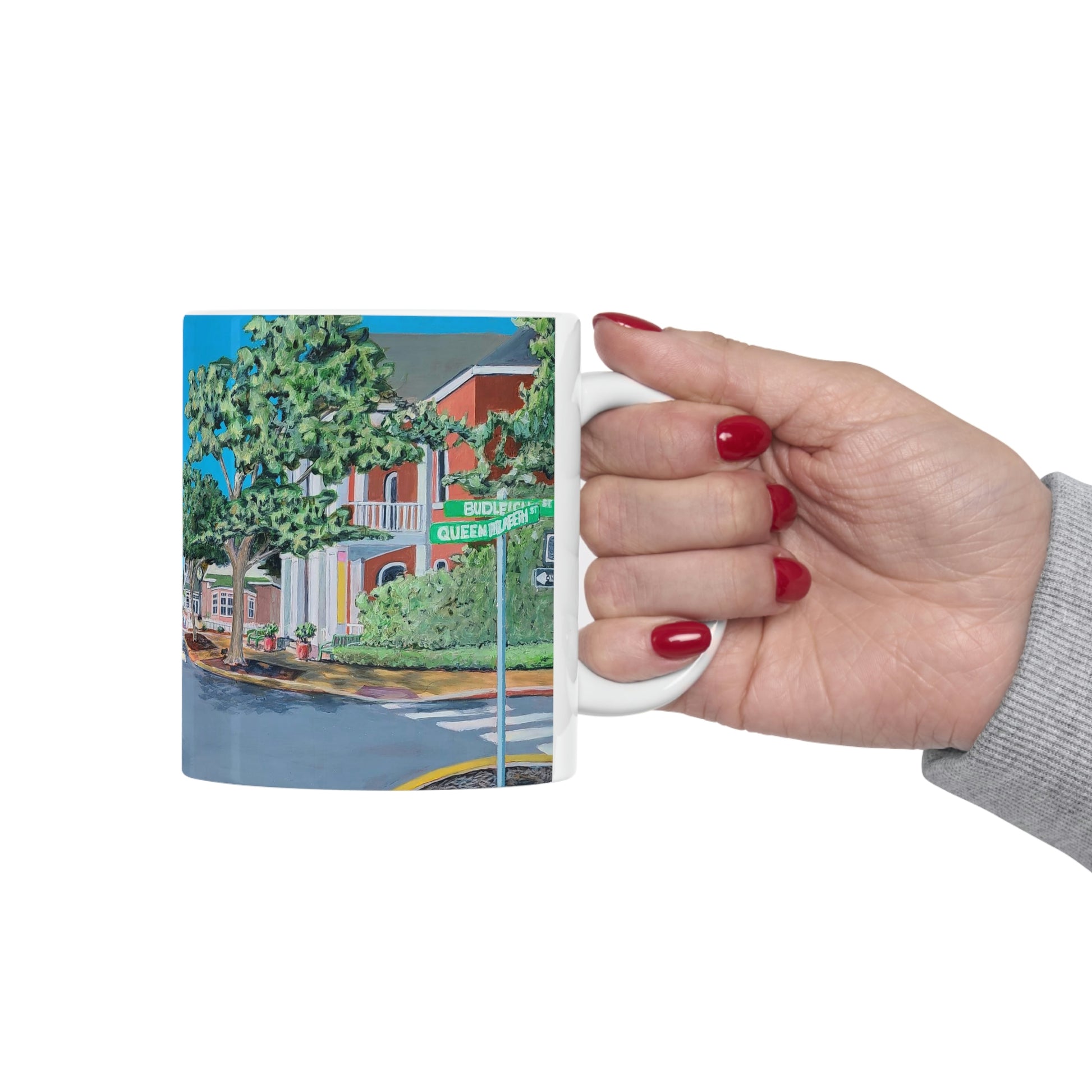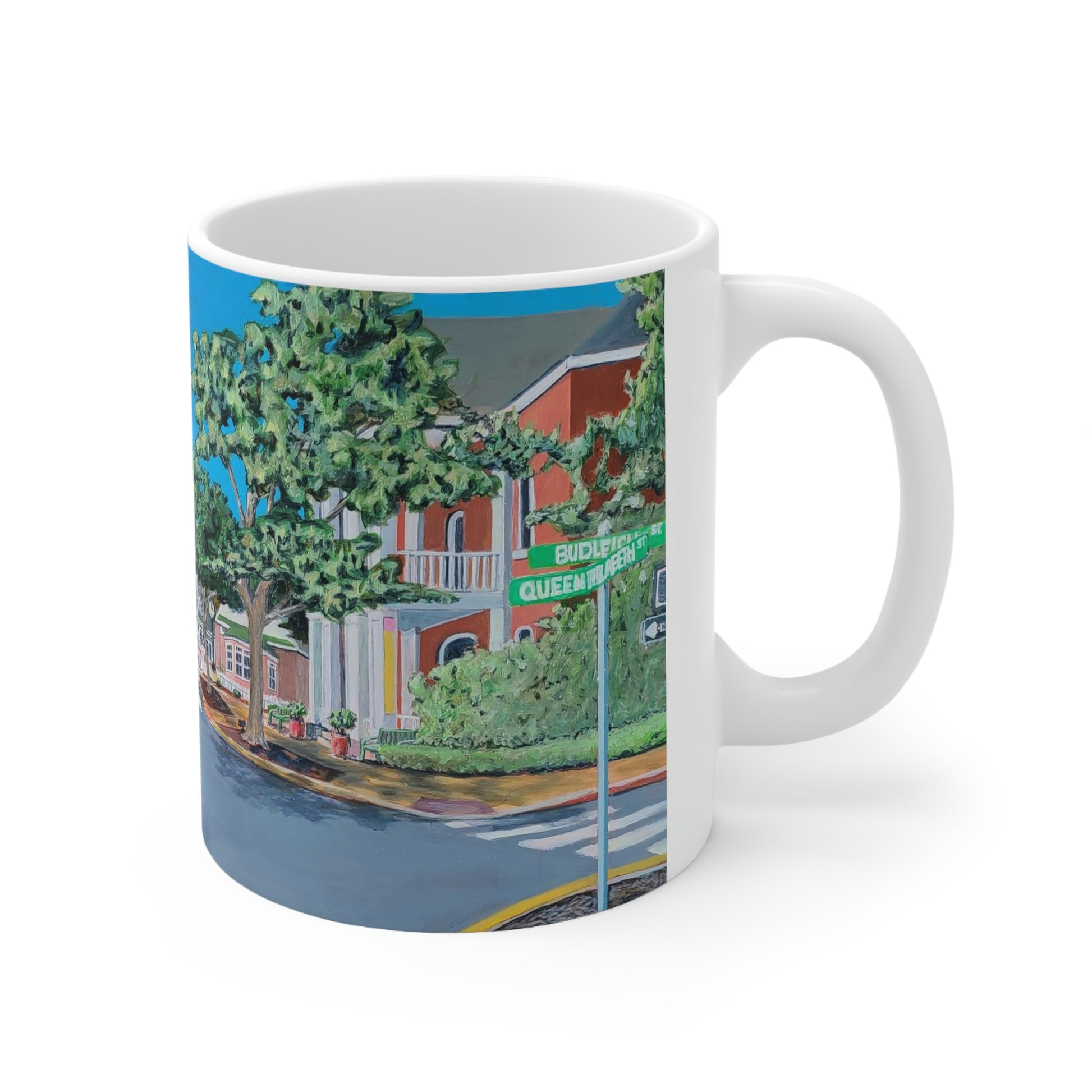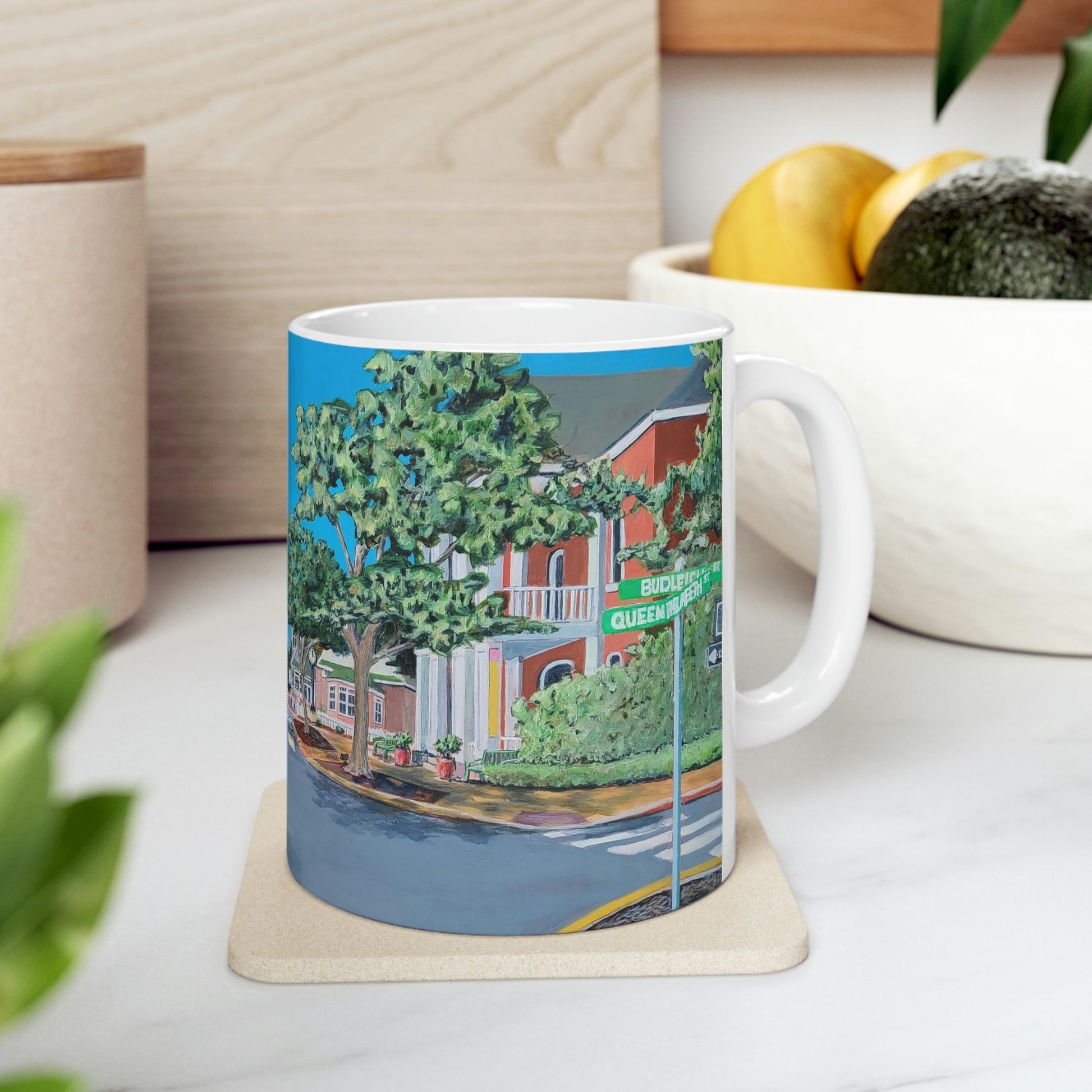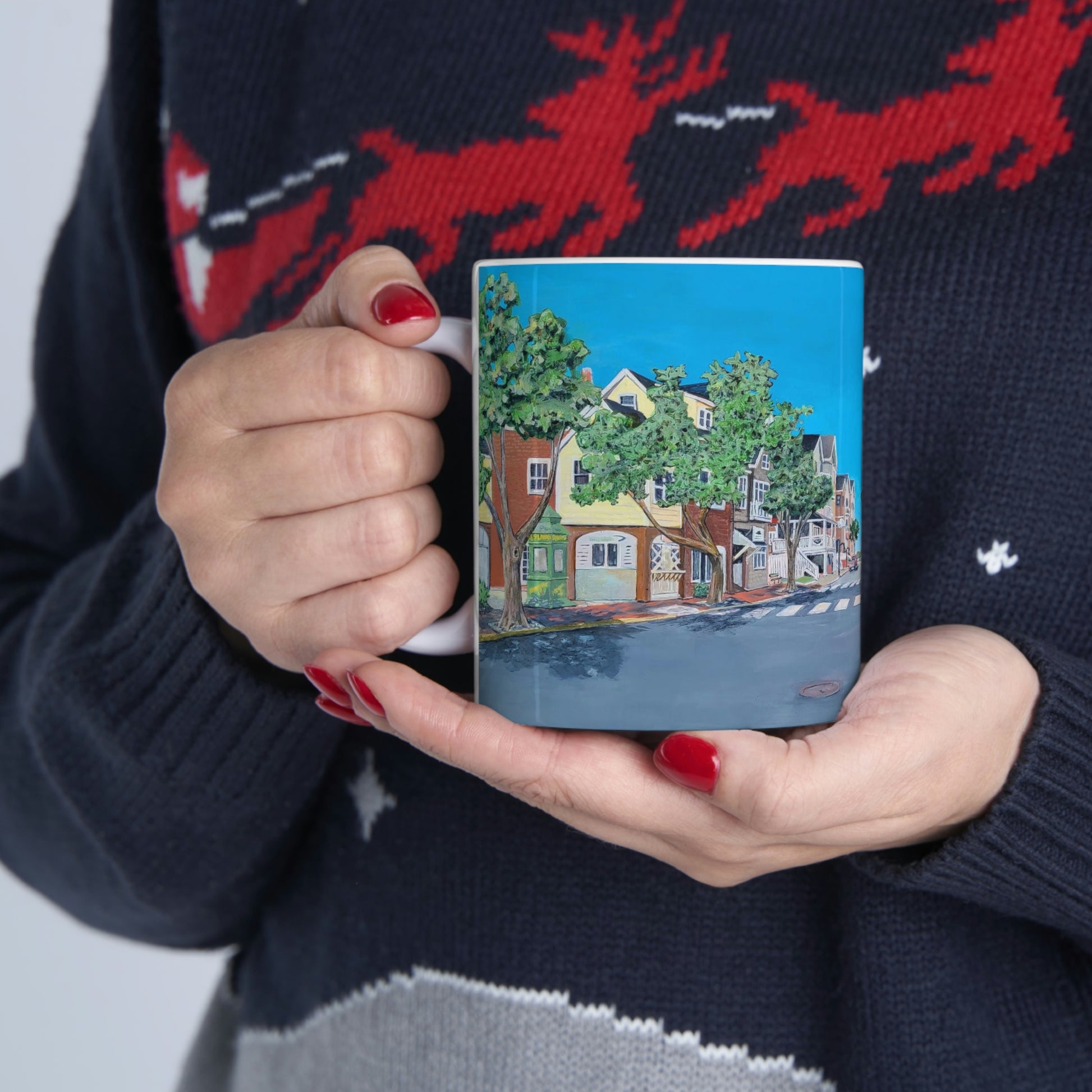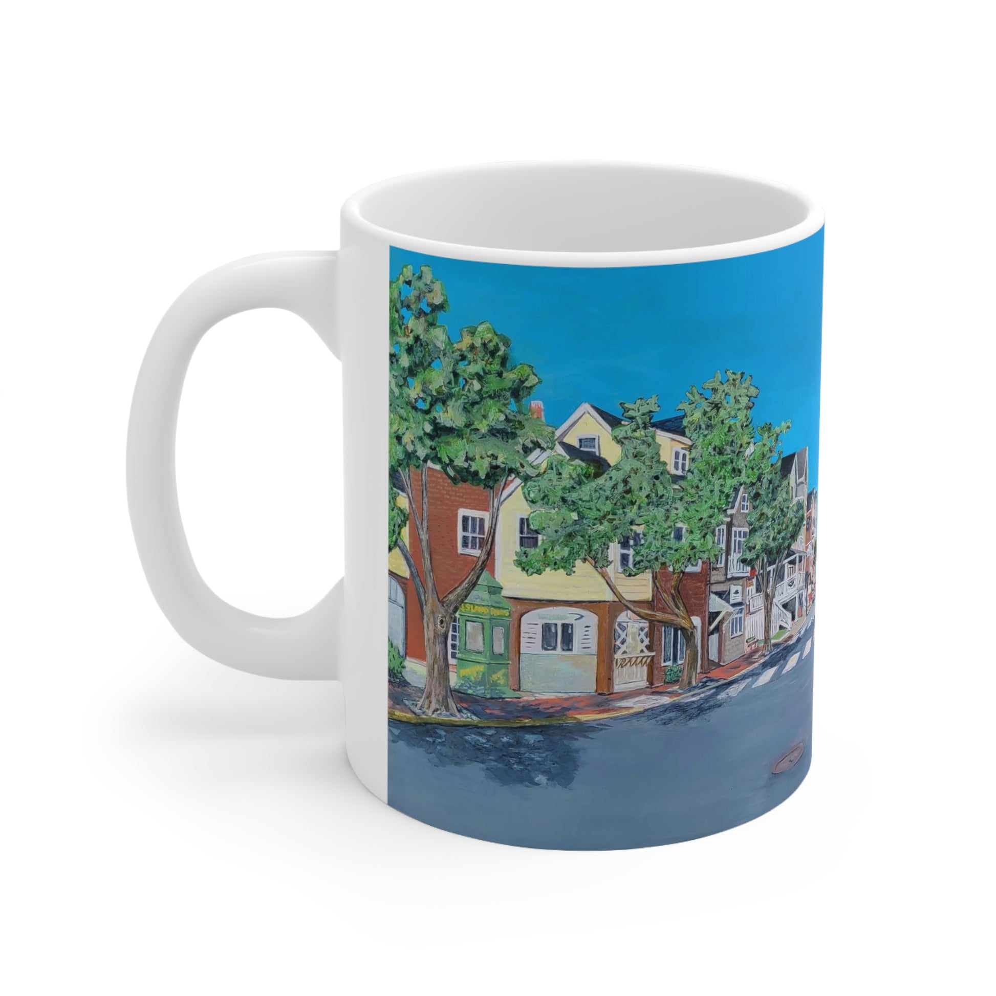 Warm-up with a nice cuppa from your Downtown Manteo ceramic mug. The images on the mug captures the colors and textures from my original painting of Downtown Manteo. The cute town located in the Outer Banks of North Carolina. The mugs are BPA and Lead-free, microwave & dishwasher-safe, and made of white, durable ceramic in an 11-ounce size. incredibly vivid colors