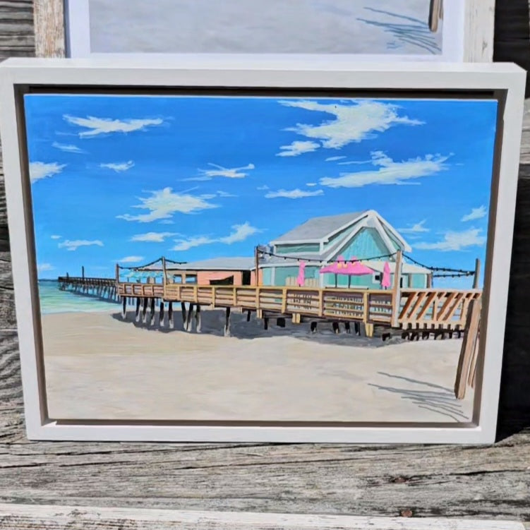 Original painting of The Outer Banks Fishing Pier, better known as "FishHeads Pier" after the bar and restaurant located there. This pier is located in Nags Head, NC, and is a popular fishing pier for locals and visitors!