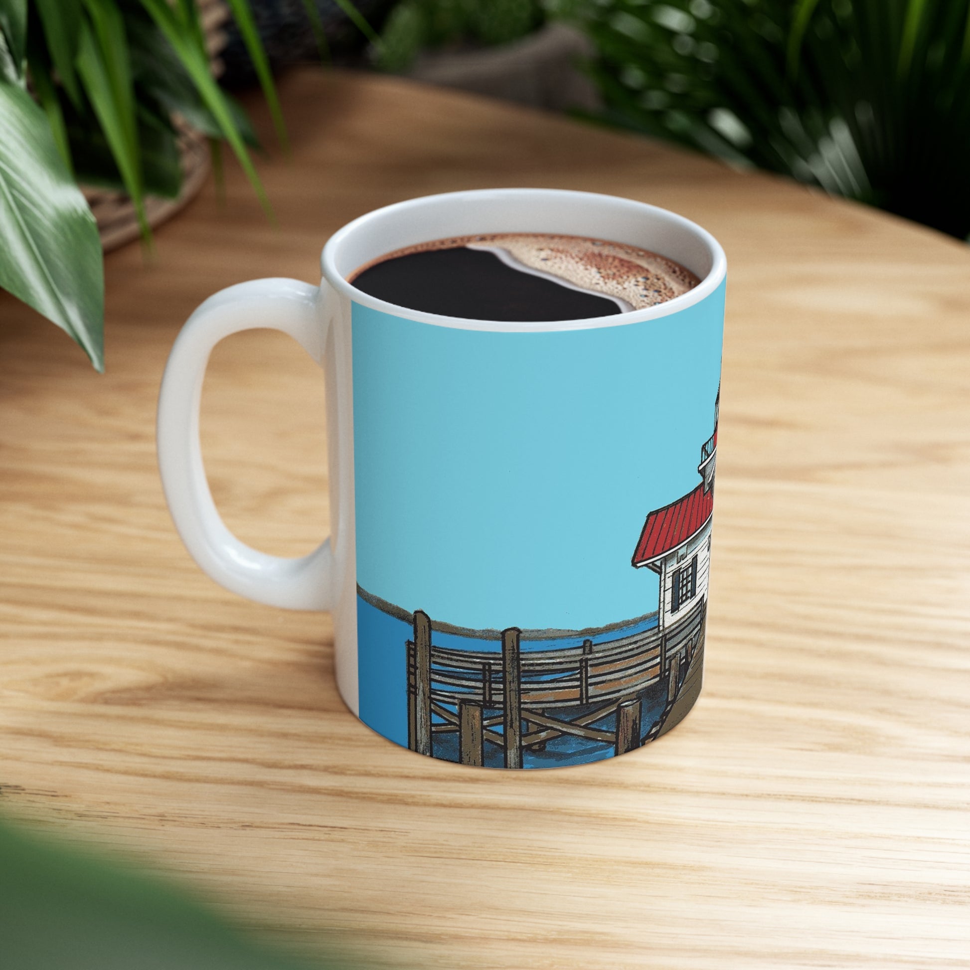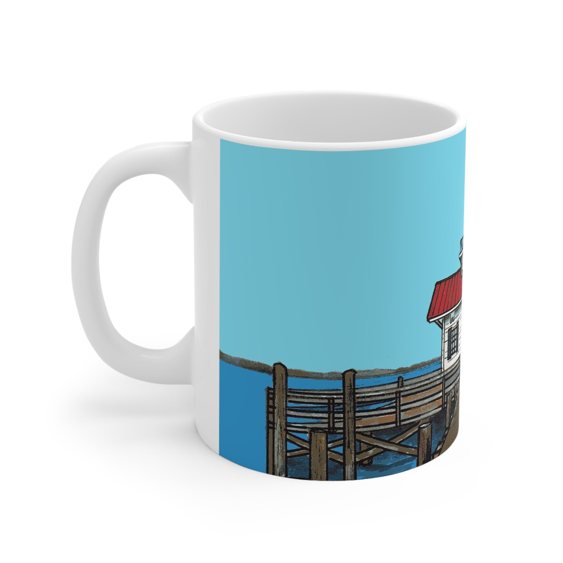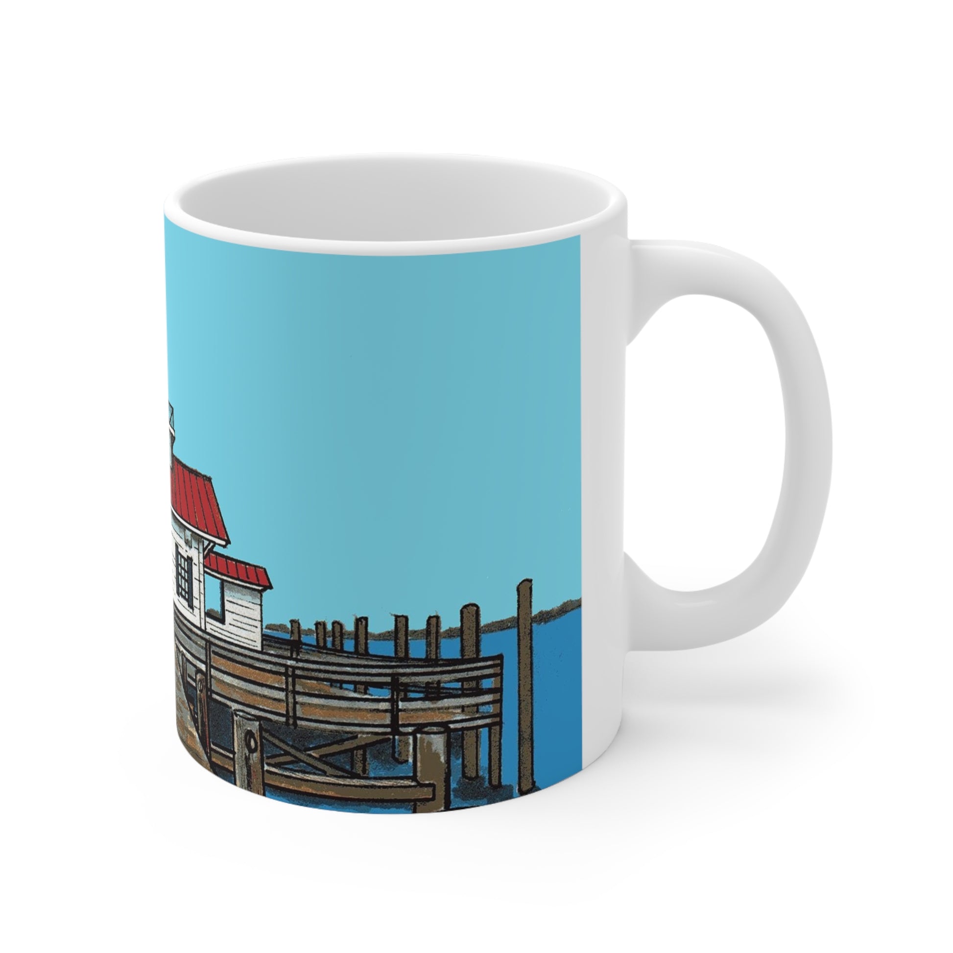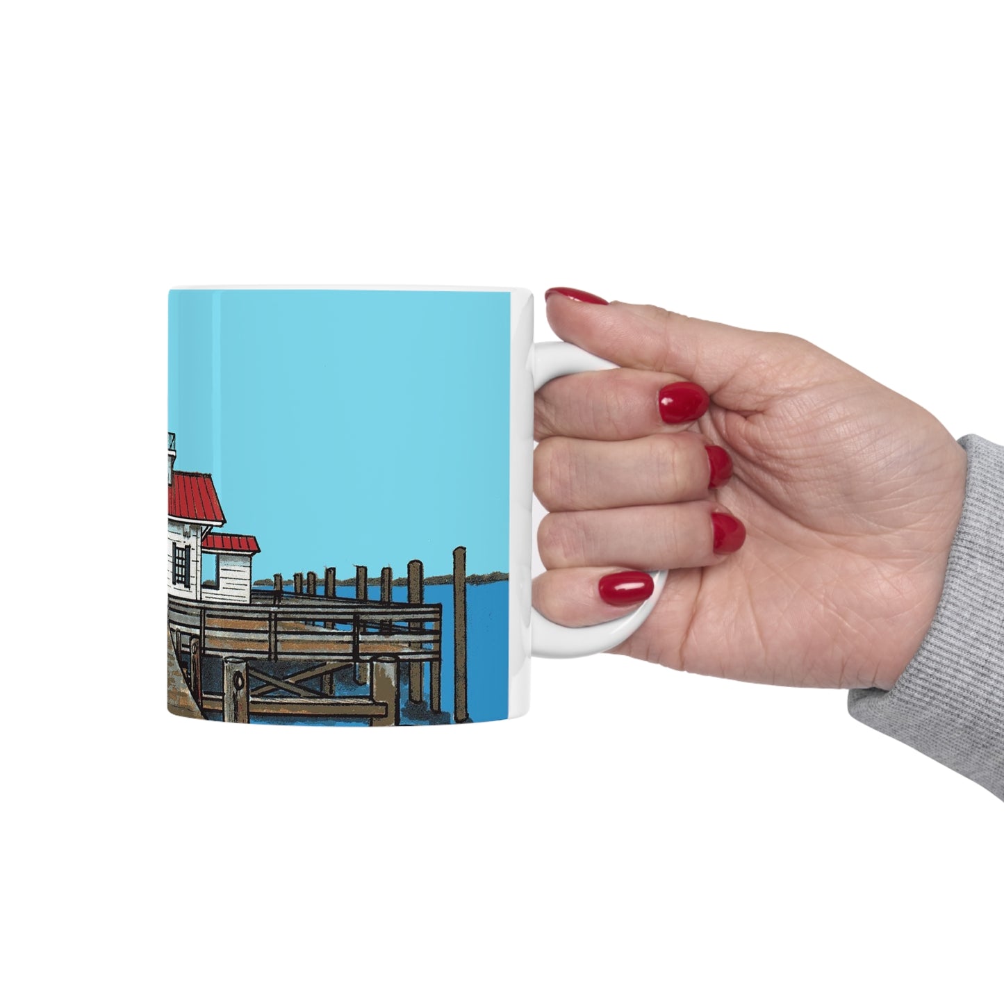 Sip on your favorite hot beverage, while you remember the cute walking town of Manteo, North Carolina. Image on the mug is of Roanoke Marshes, the lighthouse located in the downtown waterfront.