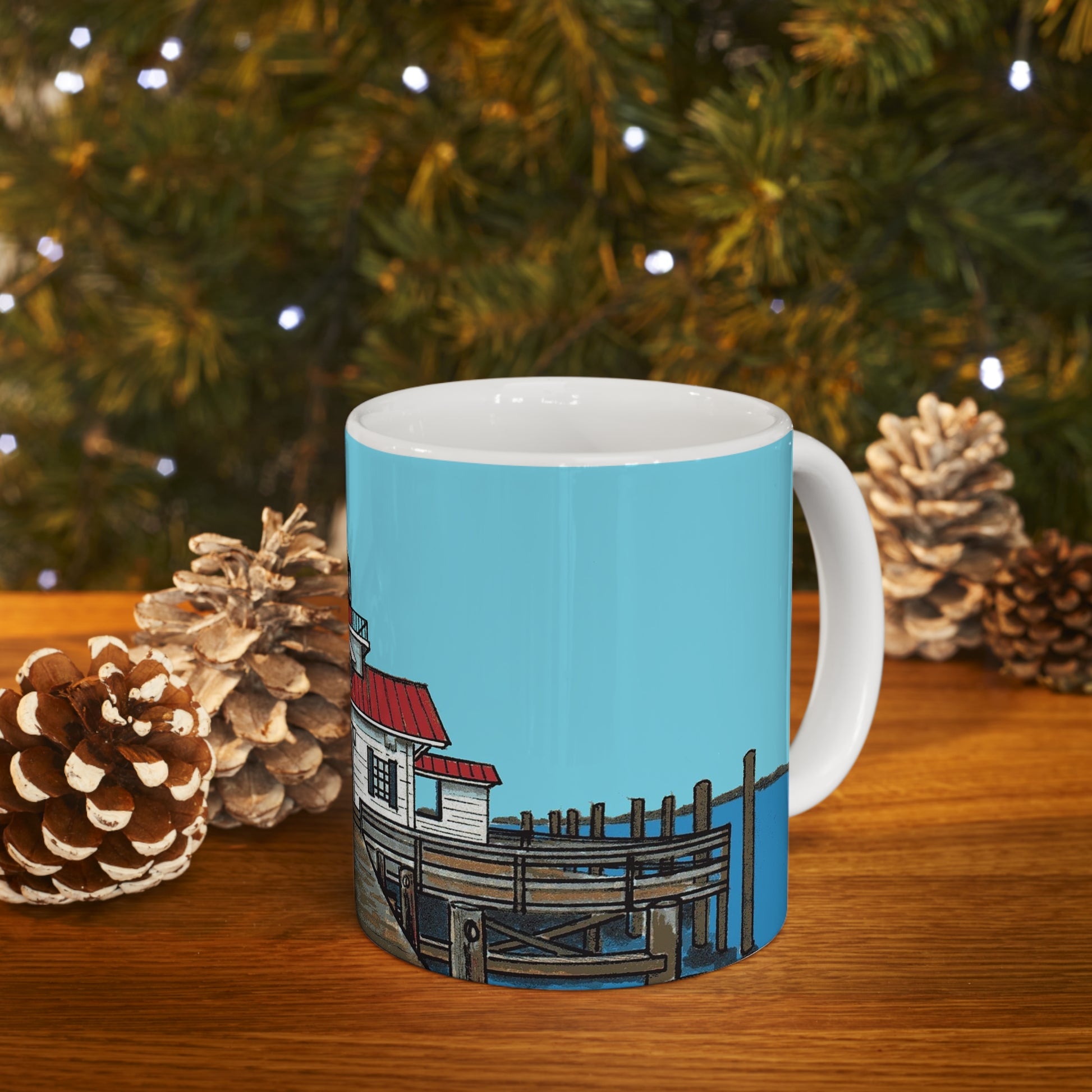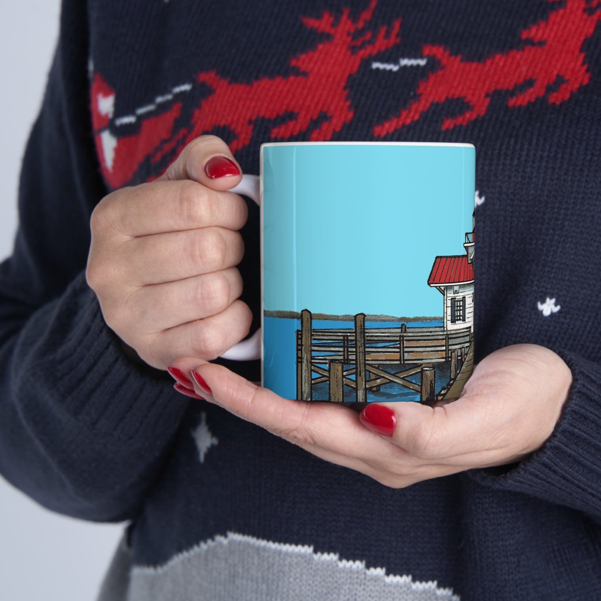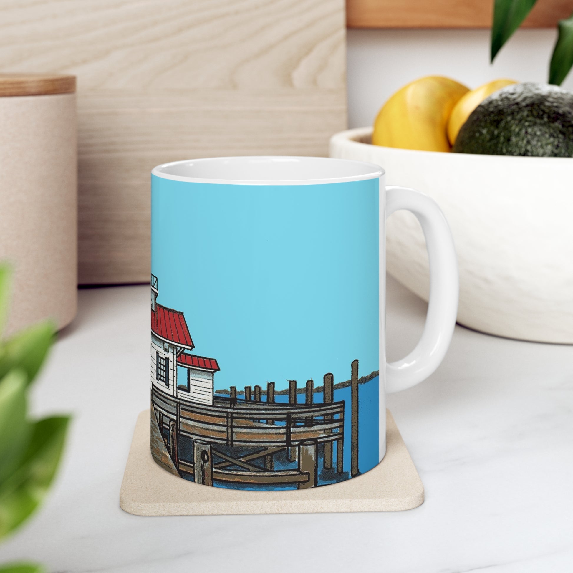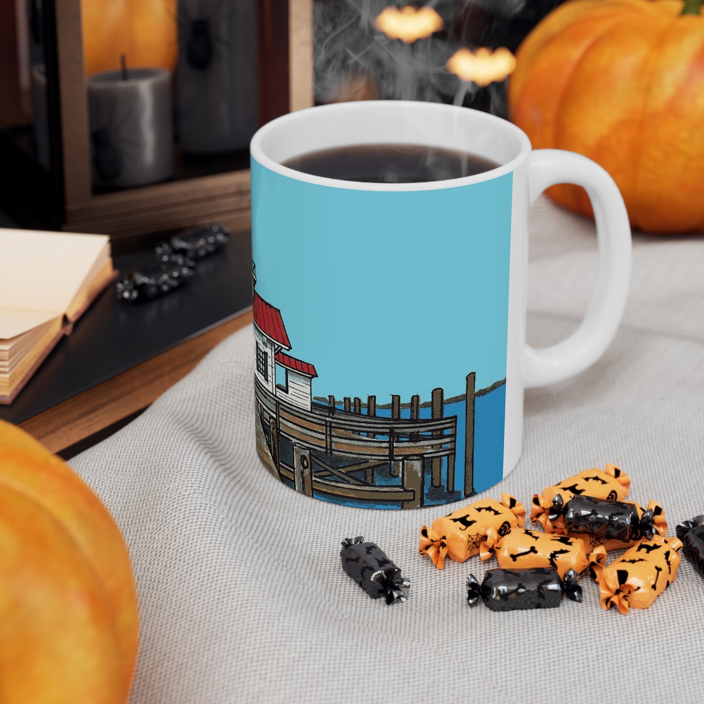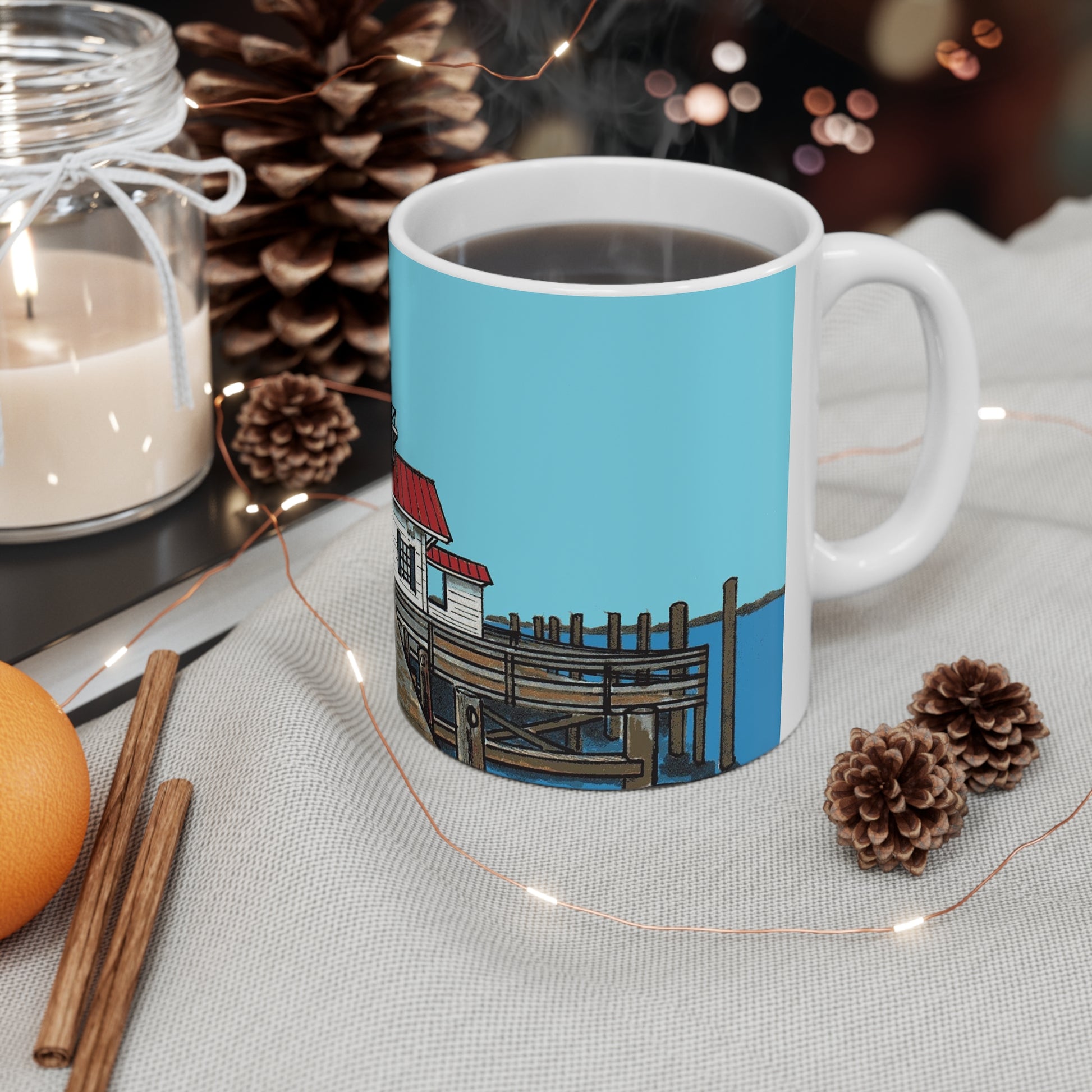 Sip on your favorite hot beverage, while you remember the cute walking town of Manteo, North Carolina. Image on the mug is of Roanoke Marshes, the lighthouse located in the downtown waterfront.