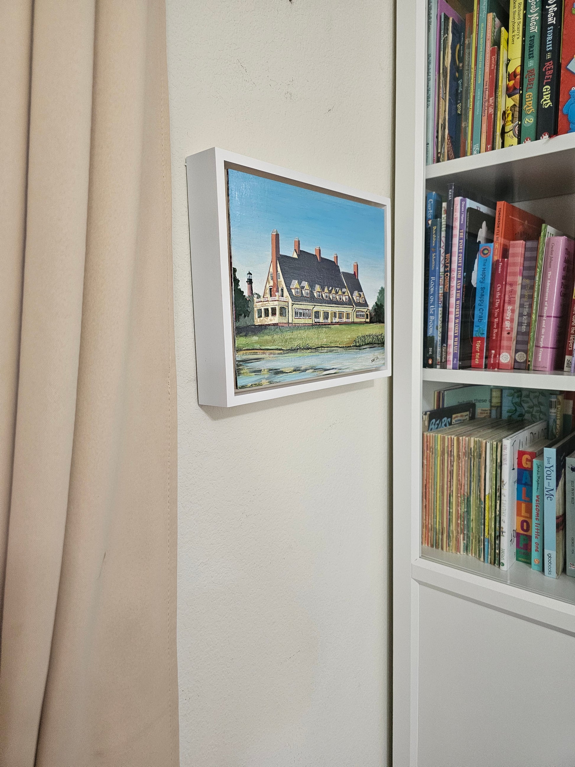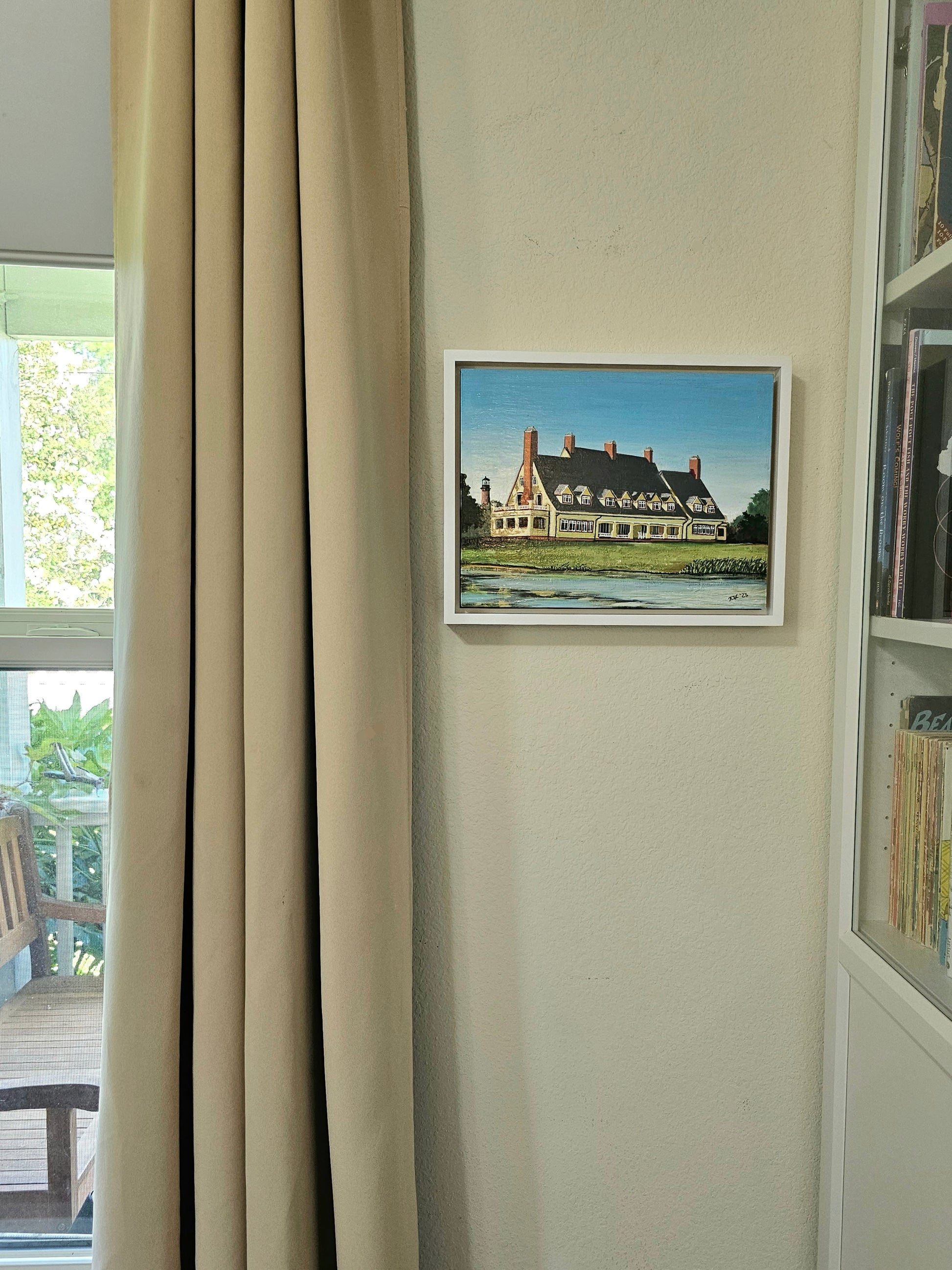 The Whalehead Club is located in Currituck, NC near the Currituck Lighhouse (also seen in the painting).